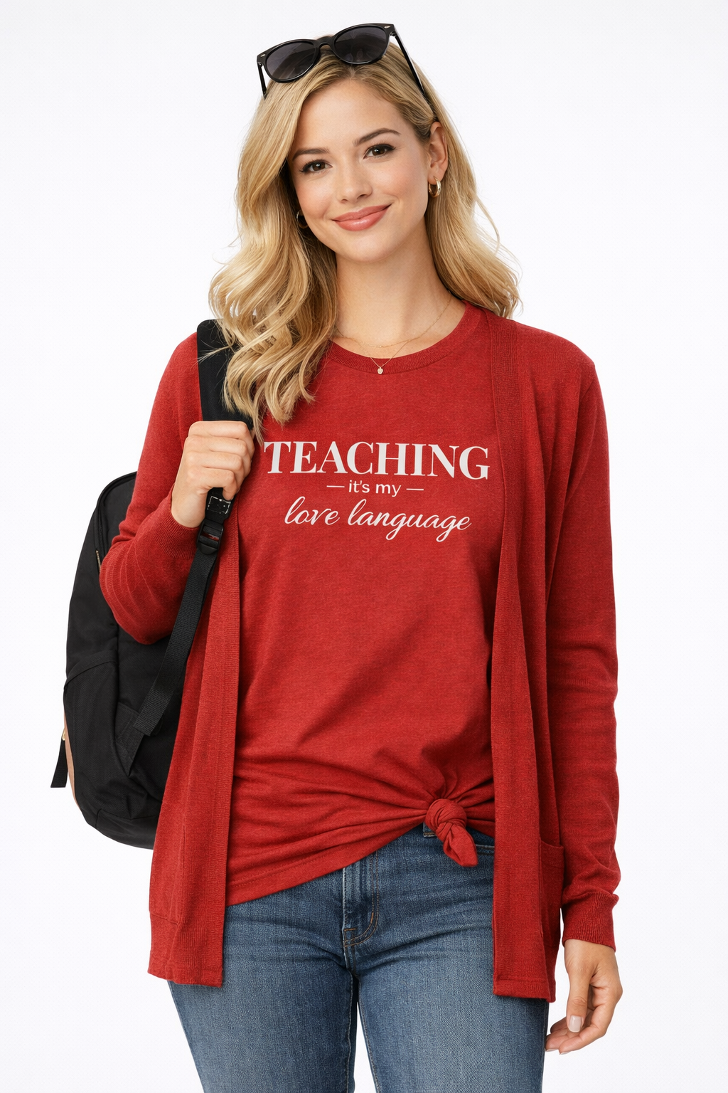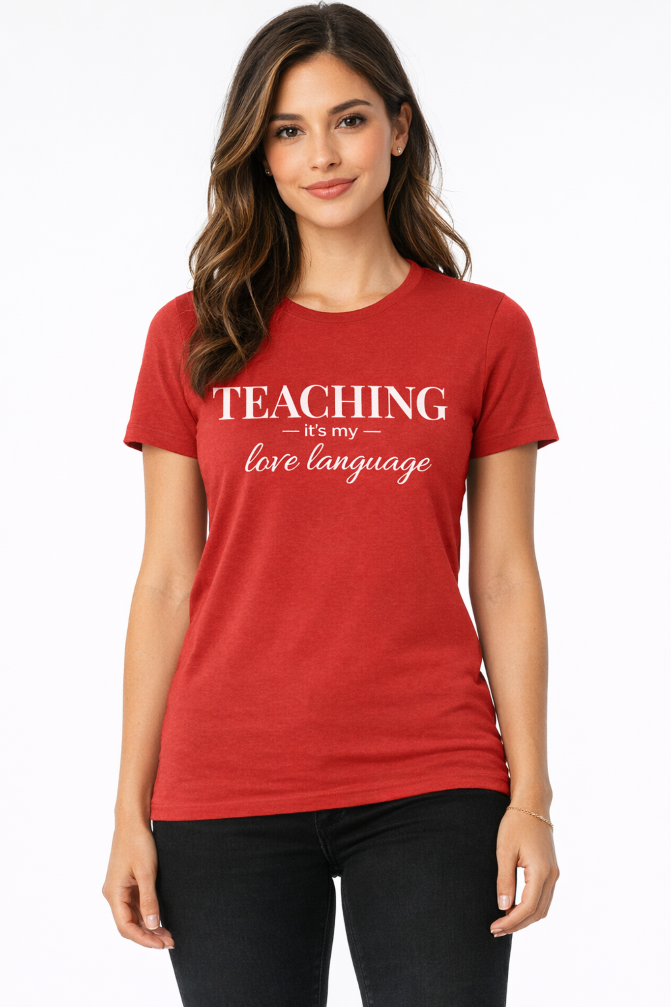 This soft red tee says what so many teachers feel: teaching isn’t just what you do, it’s how you love. Designed with a relaxed, flattering fit and printed in crisp white, this shirt is easy to style for school days, casual Fridays, weekends, and everything in between.