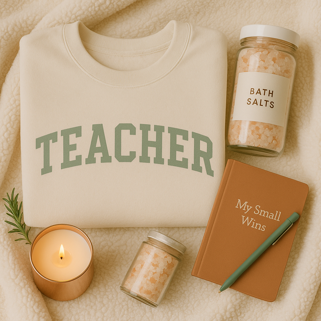 This is more than a subscription — it’s your monthly ritual of reset. Each After the Bells™ box is intentionally curated to help teachers breathe again after the day is done. Inside, you'll find five themed collections created to restore calm, spark joy, and remind you that you’re worthy of care too.